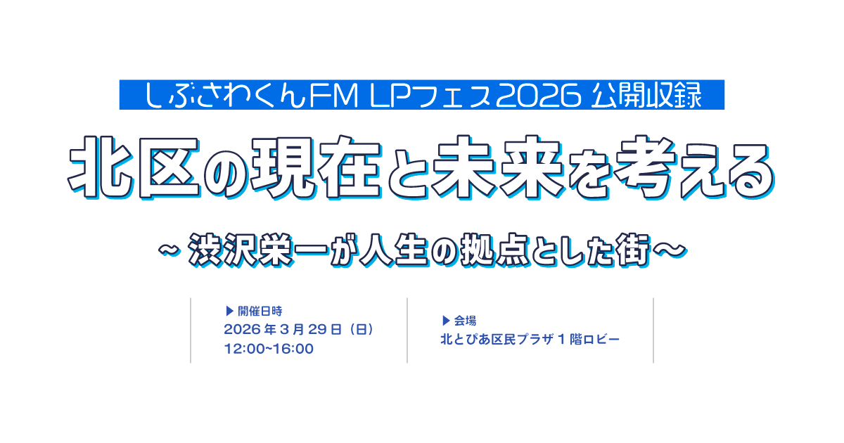 その北区を舞台に、しぶさわくんFM主催「ローカルポッドキャストフェス トーキョー2026」の特別企画として、北区の未来をテーマにした公開収録イベントを開催します。